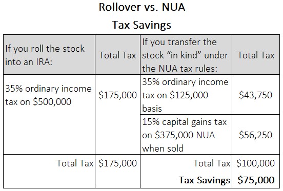 - Deciding whether NUA makes sense for your situation depends on a number of factors. If by rolling to an IRA taxes can be deferred for a long time and/or paid at lower rates, a lump sum may not be desirable.